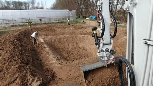 Erdbauarbeiten an einem Wasserretentionsbecken